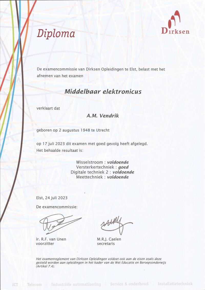 'Dirksen Opleidingen' te Elst was toen nog de enige die deze opleiding nog in haar curriculum had en heb ik mij aangemeld. Ik ben er bijna 4 jaar mee bezig geweest en uiteindelijk is het goed verlopen.