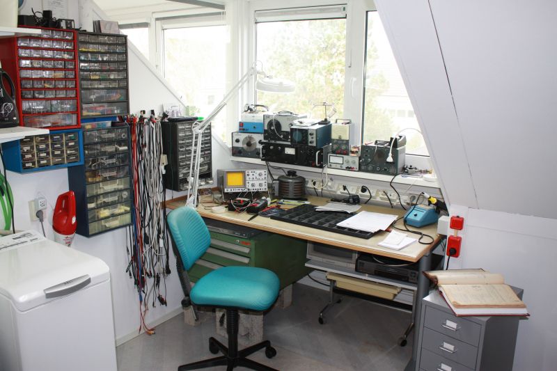 De benaming 'meetplaats' is een term uit mijn Telefunkentijd. Op de meetplaats vinden alle elektronische werkzaamheden plaats. Daar staat ook de metopstelling van de meest gebruikte instrumenten direct gebruiksklaar opgesteld en er zijn ook voldoende stopcontacten om alles aan te sluiten. Er is een soldeerbout aanwezig en gereedschap onder handbereik. In ladenkastjes aan de wand zijn de meest voorkomende componenenten zoals weerstanden, condensatoren en halfgeleiders ondergebracht.